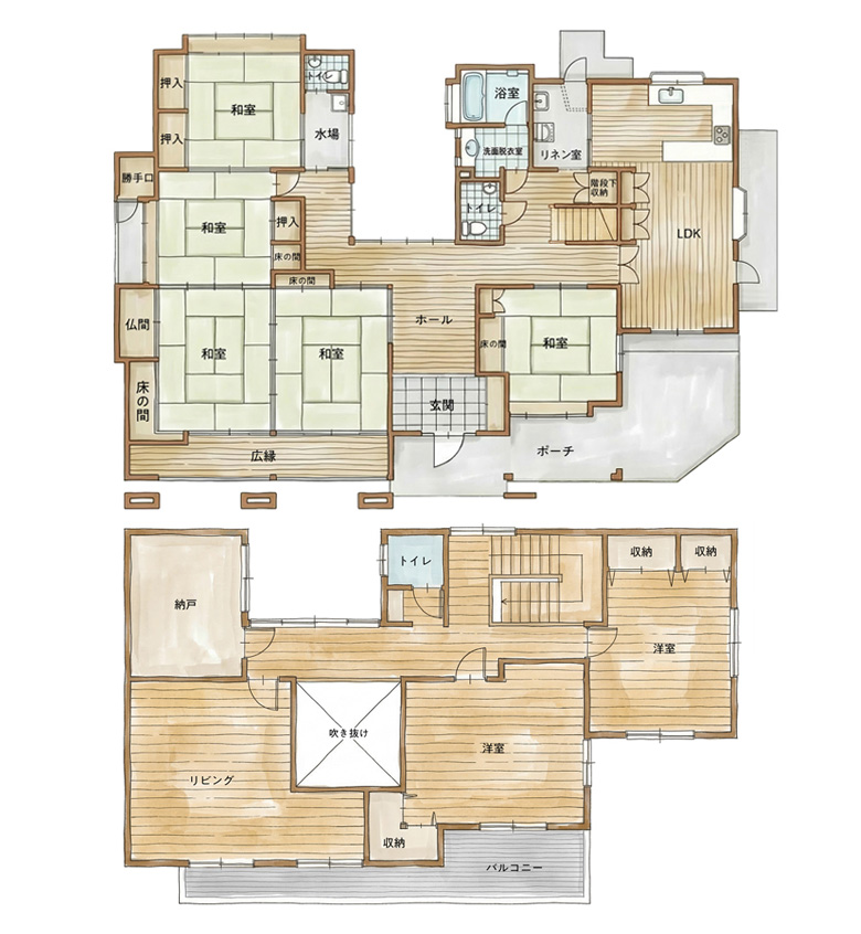 大きなご実家をこれからの暮らしに合わせて再構築する計画として、不要になりがちなスペースを見直した、「二階建てを平屋にする減築リノベーション」をご提案。