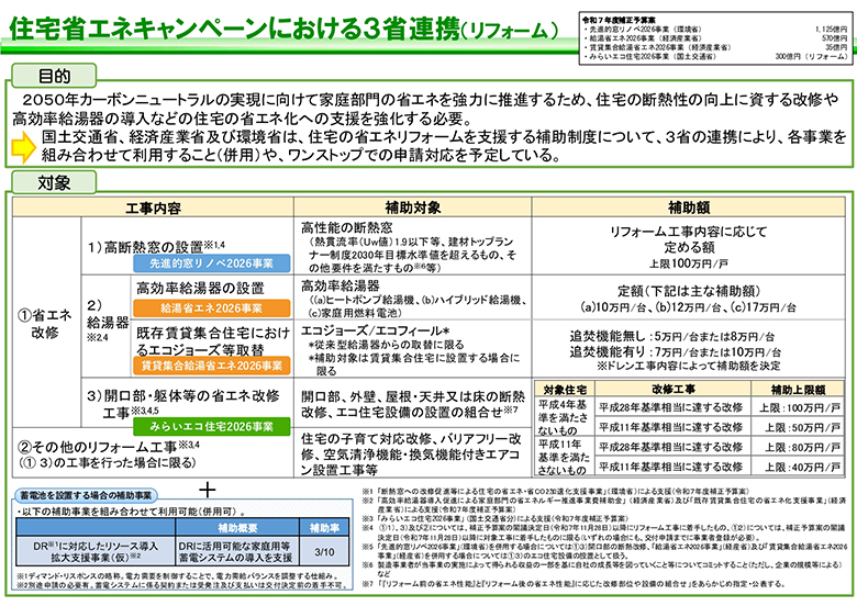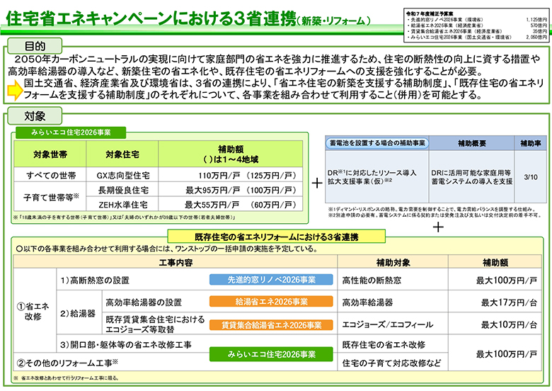 また、昨年も同様にありました、みらいエコ住宅事業(昨年は子育てグリーン事業)も継続ですが、築年数と断熱改修のレベルによって補助金額が変わります。