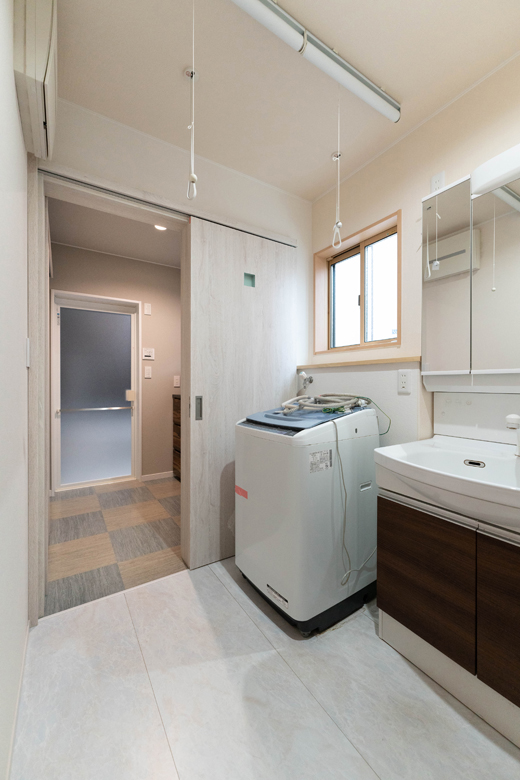 日当たりの良い西側をランドリーに。ベランダからインナーにしたことで、天気に関係なく洗濯ができるようになった。