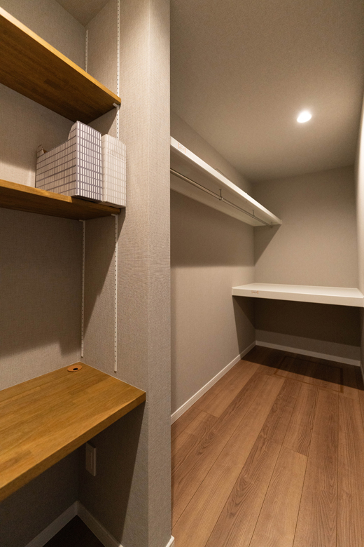 増築部分となる書斎コーナーとウォークインクローゼット。収納を増やしたいというご両親のご要望を叶えた。