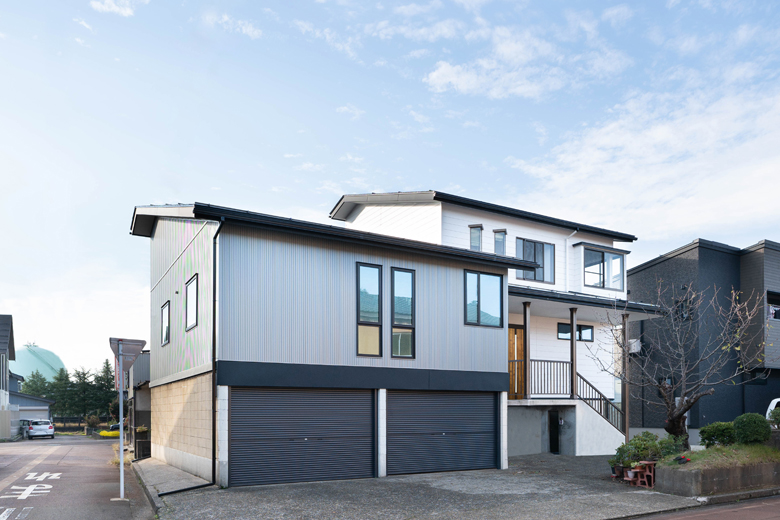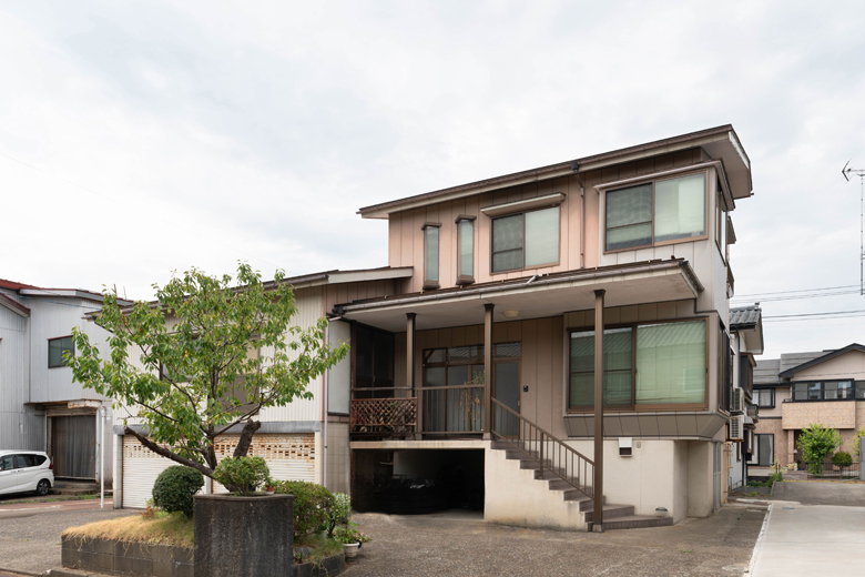 (営業・設計)Y様邸は、奥様のご実家を活用したリノベーションです。もともと2階に住居と長年使われていなかった工場があり、その工場部分を住居に取り込むかたちで全体を住空間にしました。1階はガレージになっていて、外階段を上がって工場と住居に分かれて入るかたちになっていました。