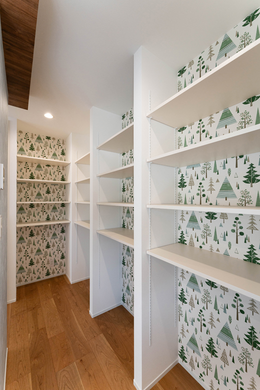 キッチン隣のウォークスルーパントリー。