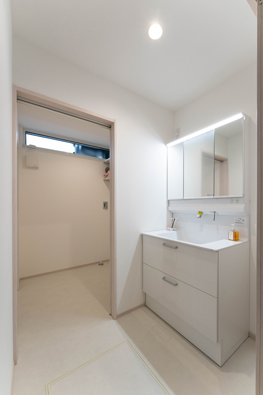 また、男女のご兄弟ということもあり、洗面室と脱衣室を分けて使えるようにしたのも配慮のひとつです。