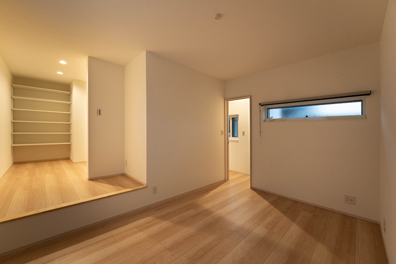 (営業・設計)お姉様とご妹様は普段からリビング周辺をよく使われるということで、1階のリビングに隣接する2部屋を割り当てました。ご弟様はゲームなどの趣味でお部屋に籠ることが多く、荷物も多いとのことで、2階に広めの1室と大容量の収納を設けています。
