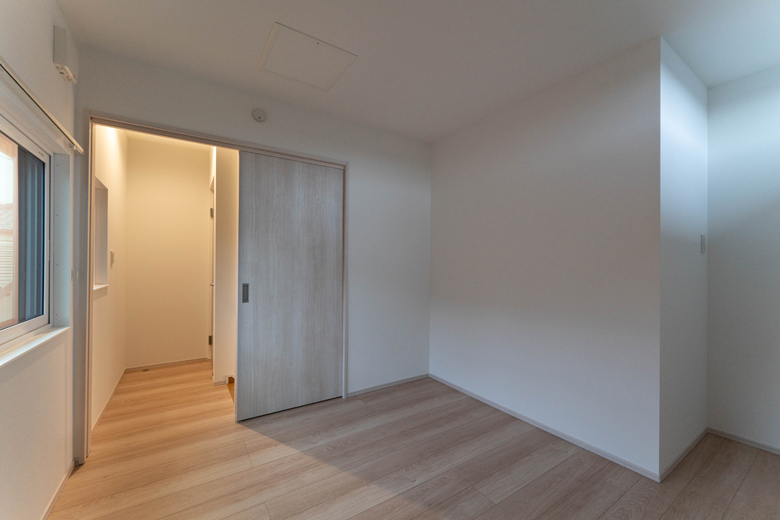 (コーディネーター)間仕切りが増える分、全体の印象が暗くならないよう、明るいトーンでまとめました。床材はカームオークを選び、建具は白い木目を基調にしています。リビングだけはアクセントとしてナチュラルオークを使い、空間に変化をつけました。