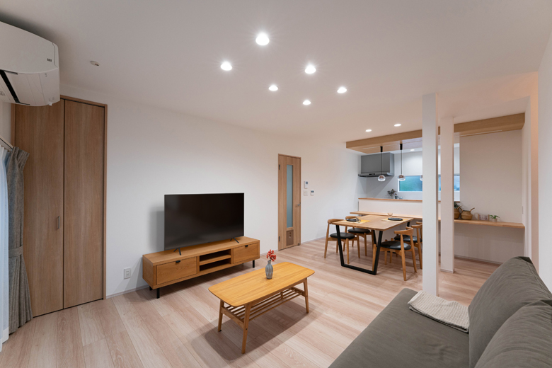 空間をつなげ、広々としたLDKに。家族でくつろげる憩いの場に生まれ変わった。