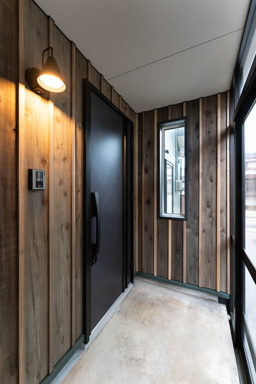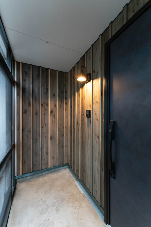 (営業:五十嵐)もともと腰壁で、そのまま残そうかという話もあったんですよね。玄関側を見せるようなタイプにしようか、という話から鉄骨に作り替え、開放感も出しました。