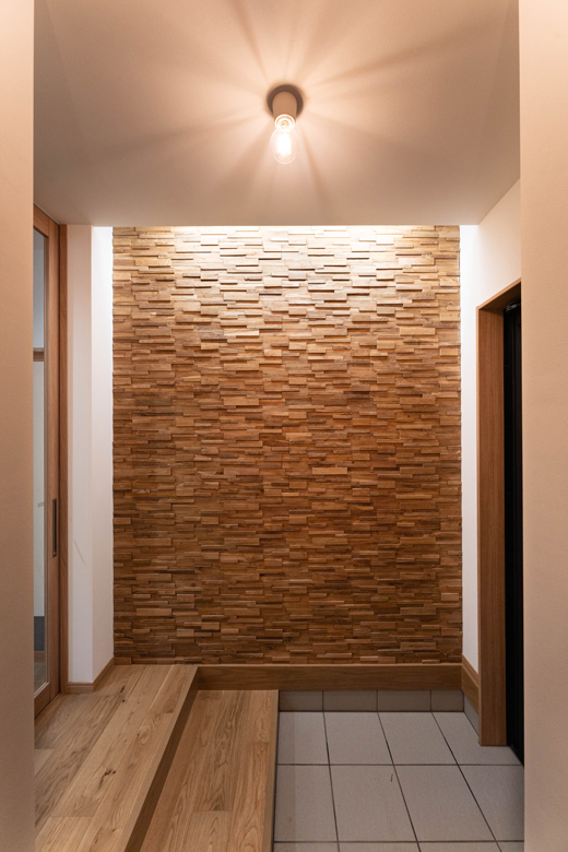 (ご主人)デザイン違いですが、どちらもミラタップ(旧サンワカンパニー)のバンピーウッド。東京にあるサンワカンパニーのショールームにいき、実物を確認して決めました。最初はL I X I Lのエコカラットを提案していただきましたが、やはりペレットストーブと木の組み合わせは譲れませんでした。