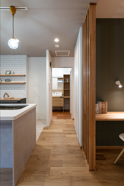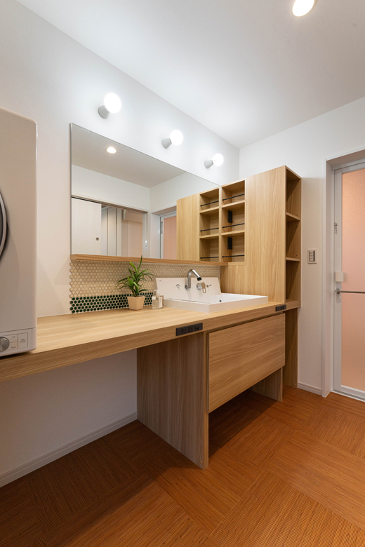 (ご主人)実は私と妻の好みが少し違ったんですよね。私は無骨さがある雰囲気が好きで、妻はきれいめが好み。全体的には妻の好みを反映しつつ、エッセンスとして無骨さのある木のアクセントを取り入れて、うまくまとめてもらいました。