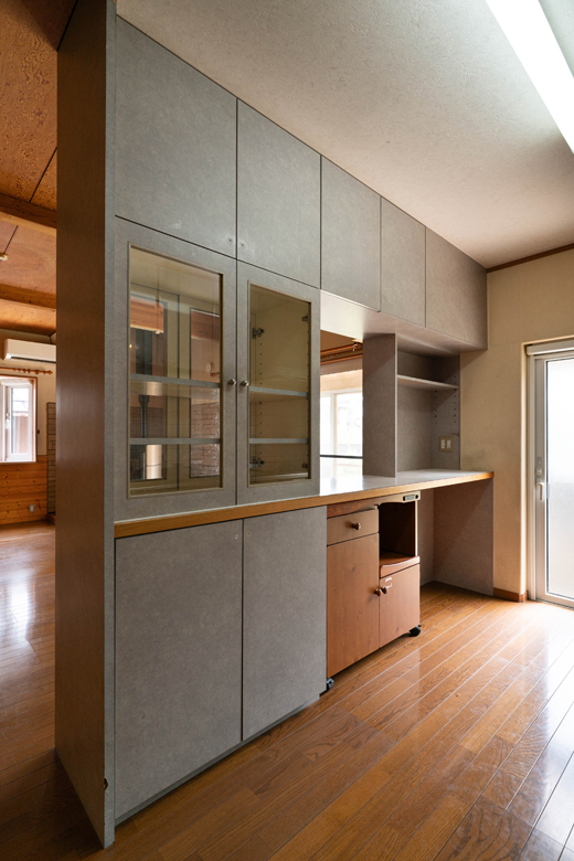 (ご主人)造作収納の上には吊り戸棚もありましたが、特に使われていなかったんです。造りつけだから動かせないですし、他の物も置けない。圧迫感もあったので撤去してもらい、開放感に変えました。