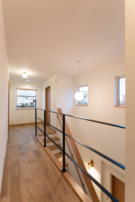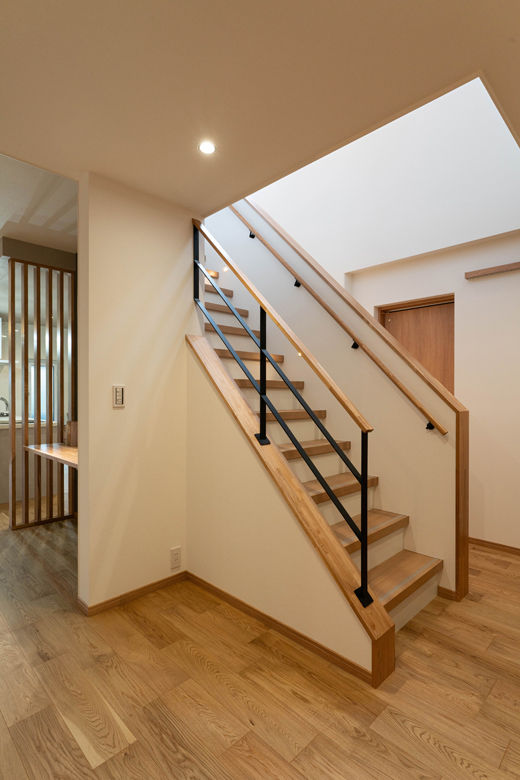 (ご主人)空気だけでなく光の通りも考えたんですよね。階段を上がったところにある南側の掃き出し窓からしっかり光が入るのに、腰壁が多くなると暗い雰囲気になるのでは、と思ったから。空気と光、両方の通り道を考え、鉄骨を選びました。