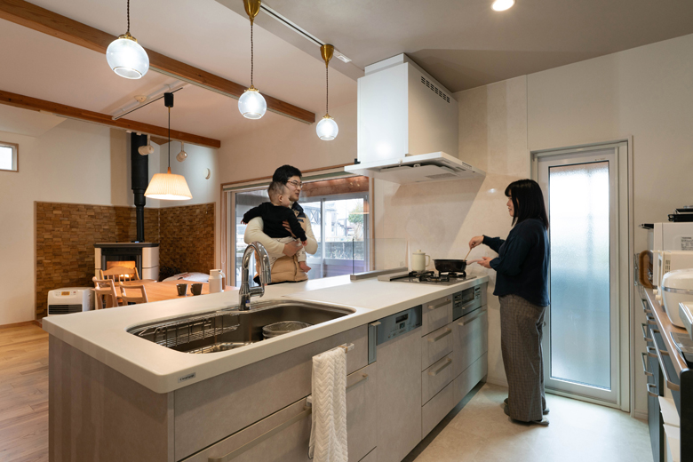 (ご主人)前のキッチンは壁付で、リビング側に食器棚がついた配置。母から調理しにくかったと聞いていたので、対面にしようと思いました。