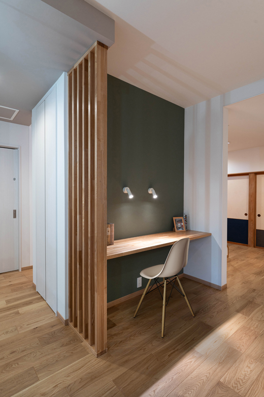 (ご主人)ルーバーは当初からどこかに取り入れたいと思っていたんですよね。子どもが勉強している姿をキッチンから見ることができるし、コミュニケーションが取りやすいと思いました。