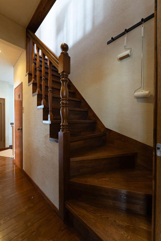 (コーディネーター)奥様のこだわりが随所に反映されています。例えば、キッチンと階段の笠木には白のシートを貼って、木目を見せないようにしています。