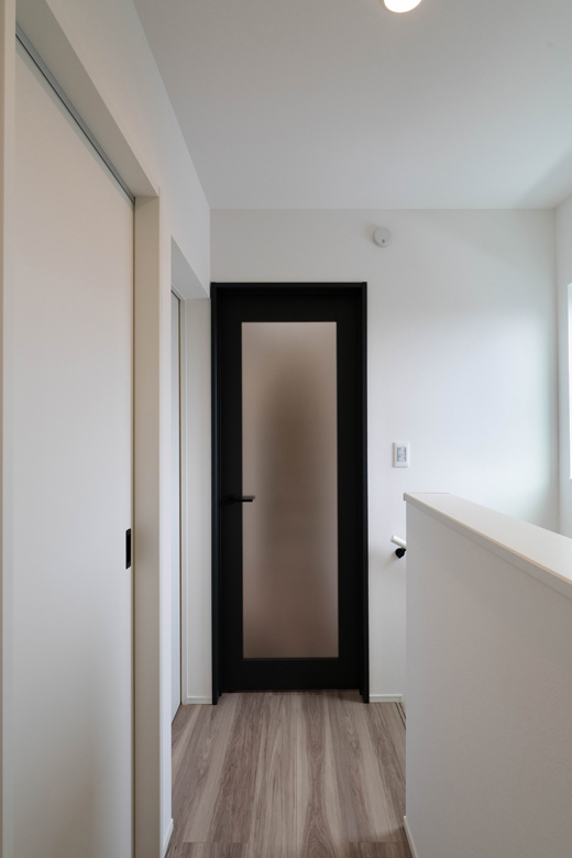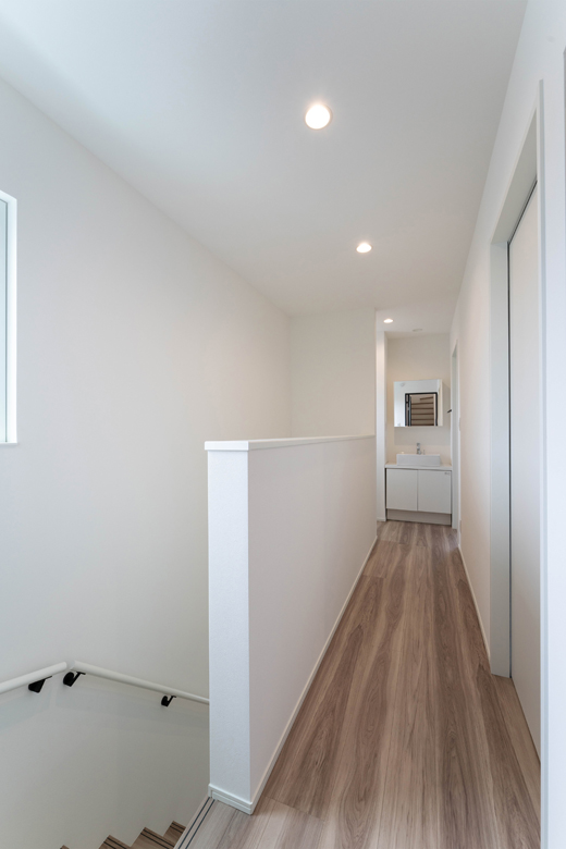 また、子ども部屋とご夫婦の寝室をしっかり確保し、寝室にはウォークインクローゼットも設けました。水まわりも1階・2階それぞれに洗面とトイレを設置し、ご家族が使いやすいようにしました。