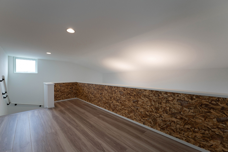 (営業・設計)まずは2階にご家族用のセカンドリビングを設け、その上にロフトを設置しました。このロフトは、もともと屋根裏収納として使われていたスペースを活用しています。これにより、N様ご家族が思い思いに過ごせる居場所が増えました。