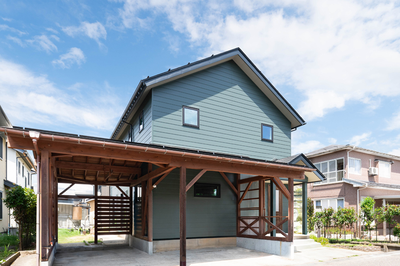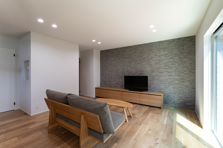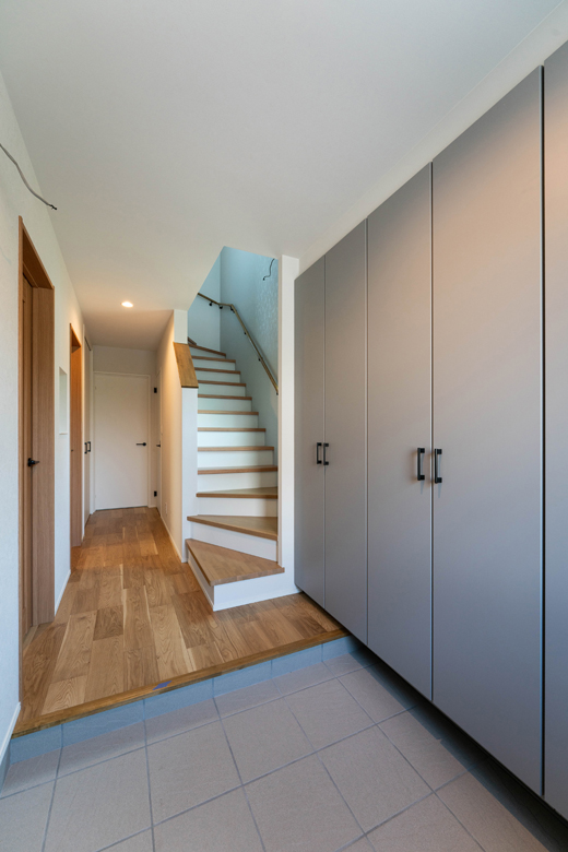 階段の位置をリビング内から玄関ホールに移動。2階のセカンドリビングへの動線がスムーズに。