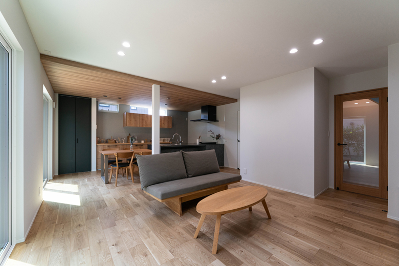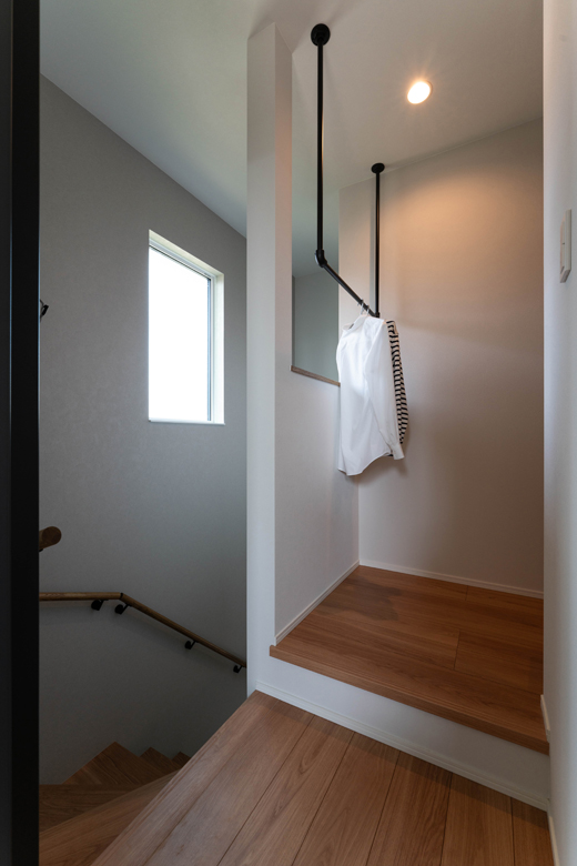 (営業・設計)大きなポイントは階段位置の変更です。リビング階段から玄関のホール階段へ移動しようとしたところ、1階の梁に干渉して上がりきれないことが分かりました。そこで、セカンドリビング側と居室側にそれぞれ段差を設けることに。結果的に、来客用エリアとプライベートエリアを分けることもできました。