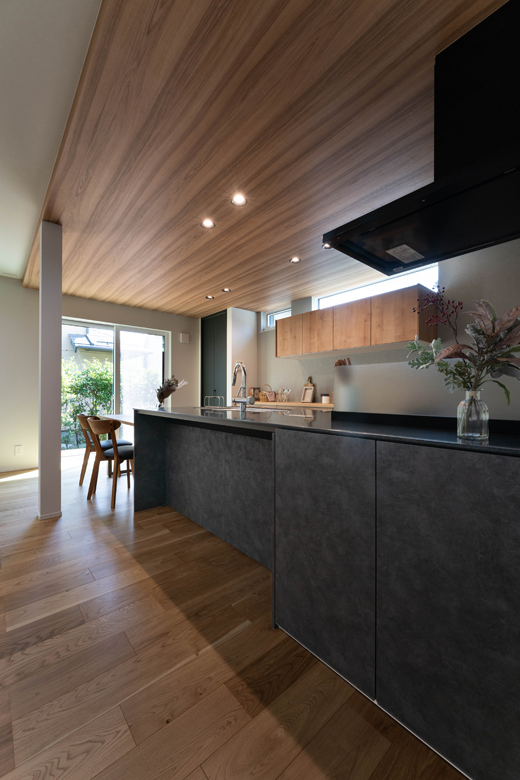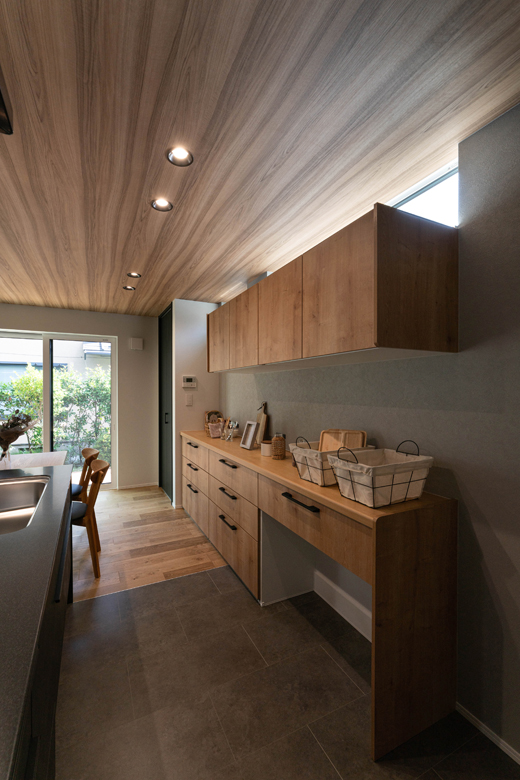 (営業・設計)奥様のご希望で、白やグレー、グレージュを基調にした落ち着いた空間にまとめています。ご自身でも施工事例やインスタグラムなどから積極的にイメージを集めてくださり、とてもスムーズに方向性を共有できました。キッチン選びについては特にこだわられていて、イメージにぴったり合うものを探すために何度もショールームに足を運ばれたと記憶しています。
