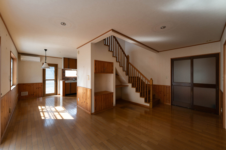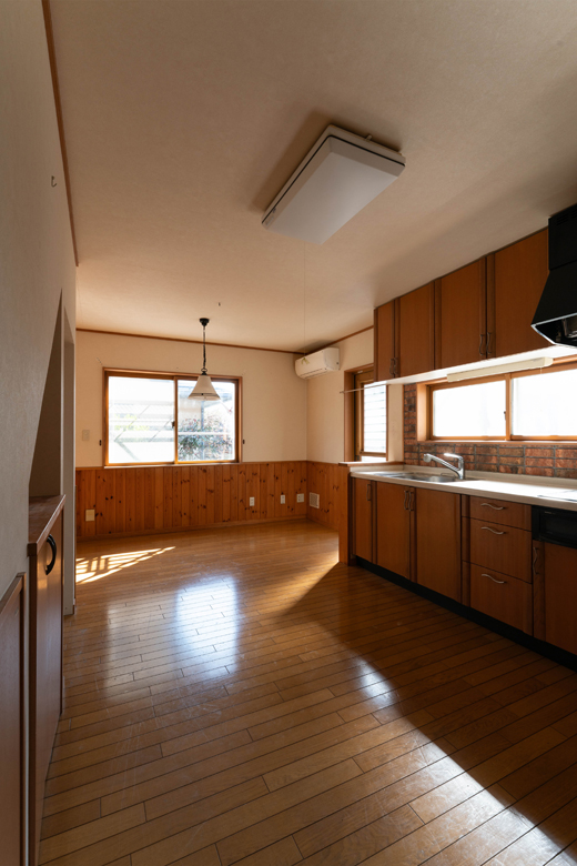 (営業・設計)今回施工させていただいたのはF様のご実家。F様ご夫婦と小さなお子様2人、お母様の5人暮らしです。生活しにくかった昔の間取りを一新し、今の暮らしに合わせてご家族が快適に過ごせるよう、今回の計画が始まりました。