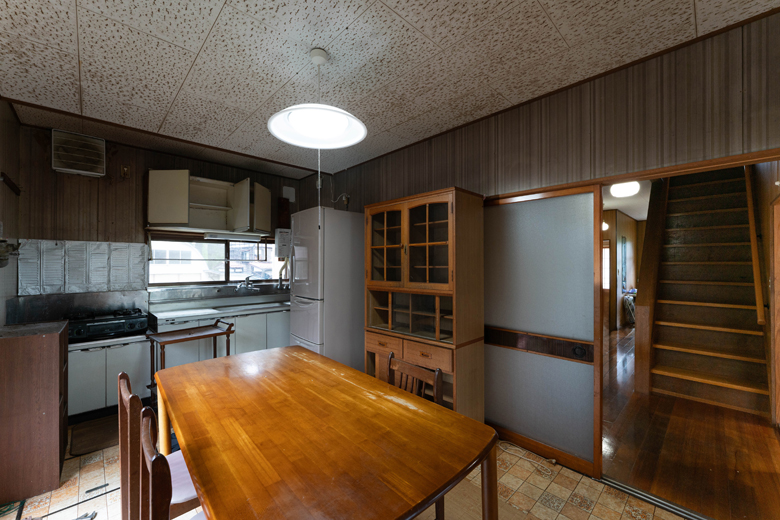以前の独立したダイニングキッチン。壁付キッチンだったこともあり、子育てしにくいつくりだった。