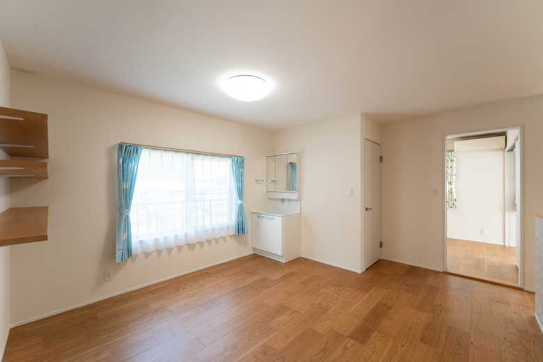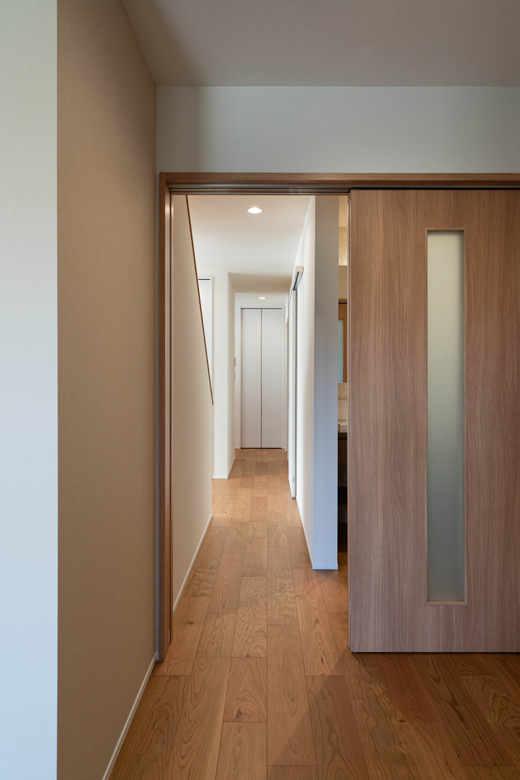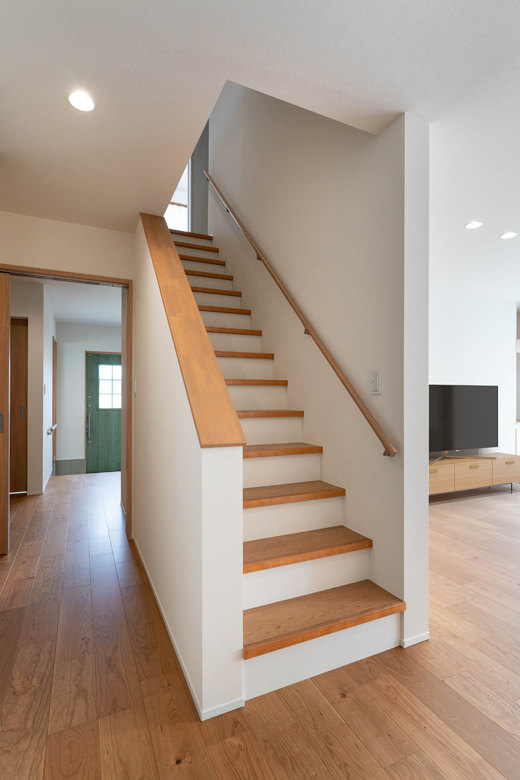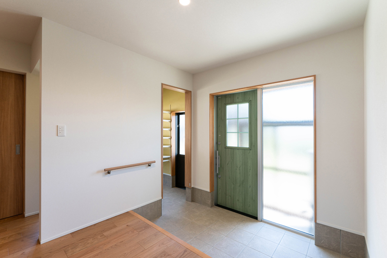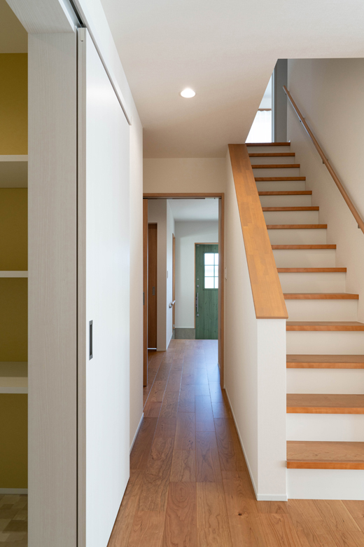 (営業・設計)一番のポイントは、家族が増えることを見越した収納計画と、家事がしやすい動線づくりです。たとえば、玄関横の一部屋をシューズクロークに変更し、土間部分を広めに取って自転車なども置けるようにしました。ただ、玄関自体が狭くなるのは避けたいというご要望もあったので、玄関の広さはそのままに、下駄箱をなくしてスッキリとした空間に仕上げています。