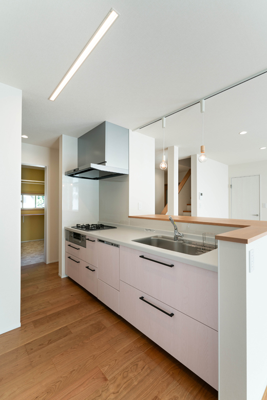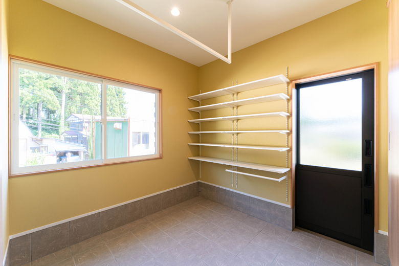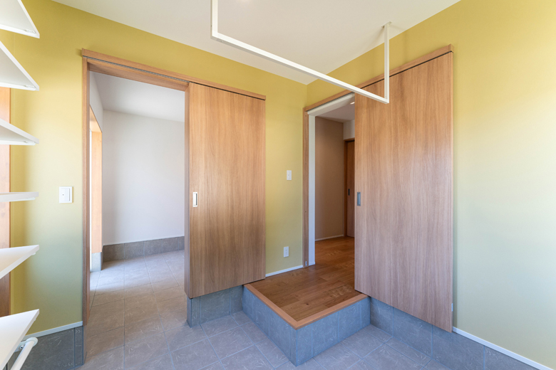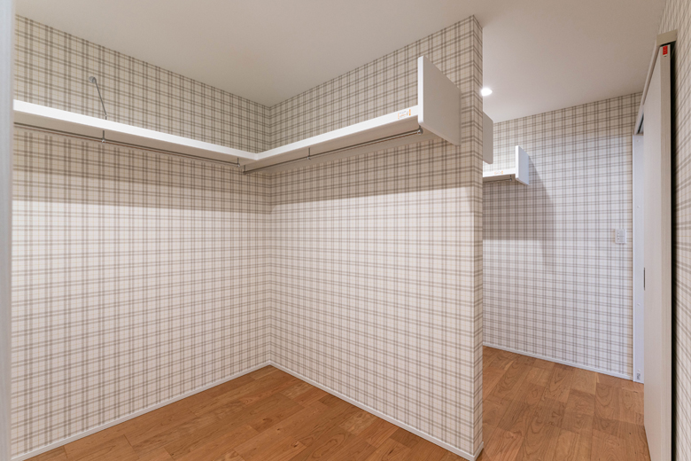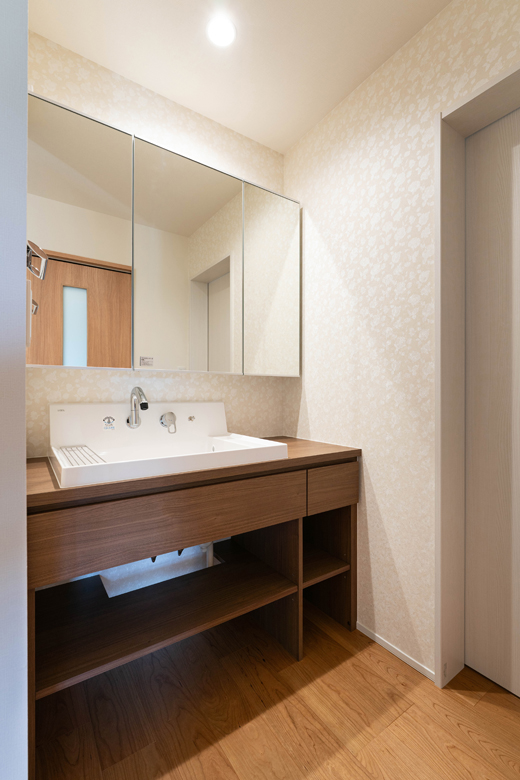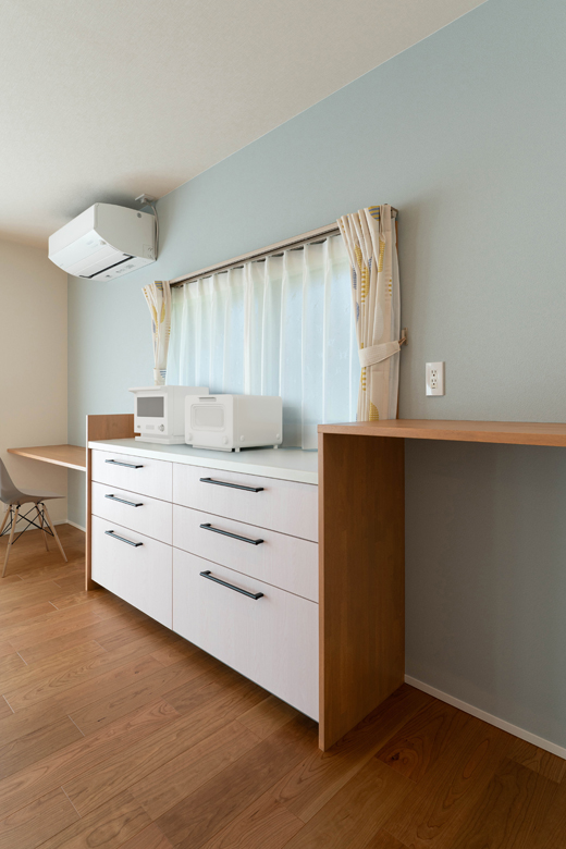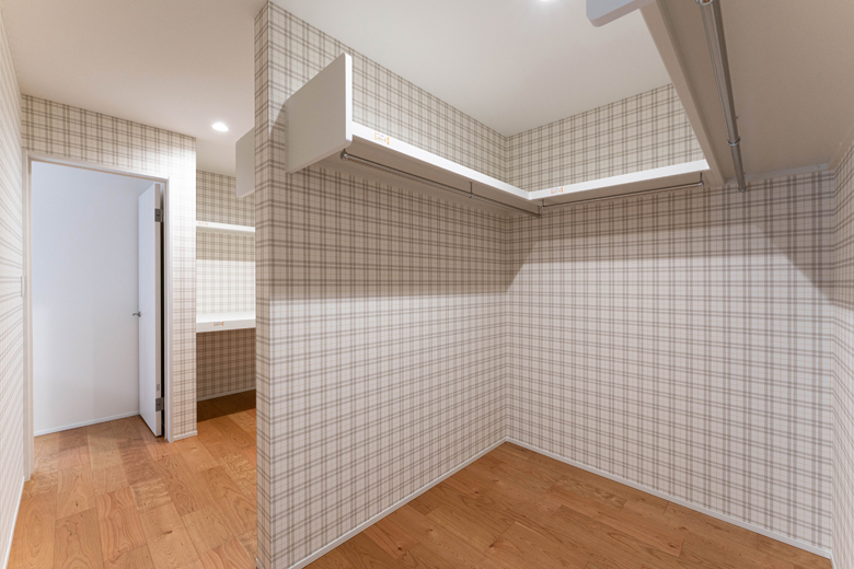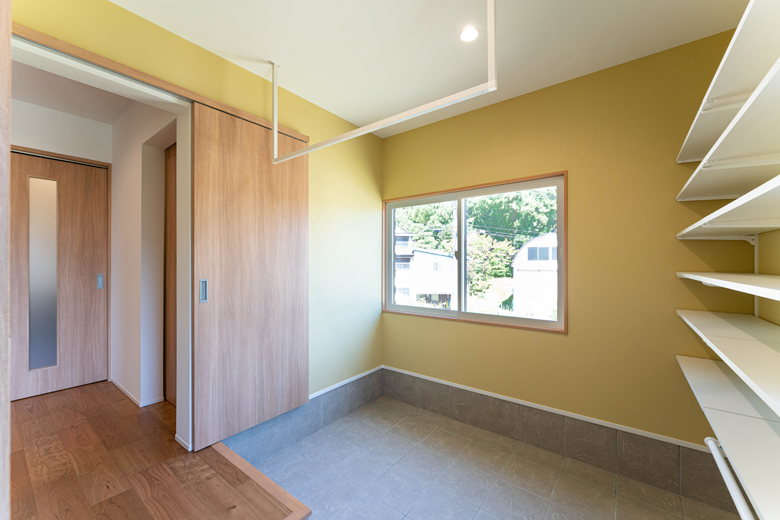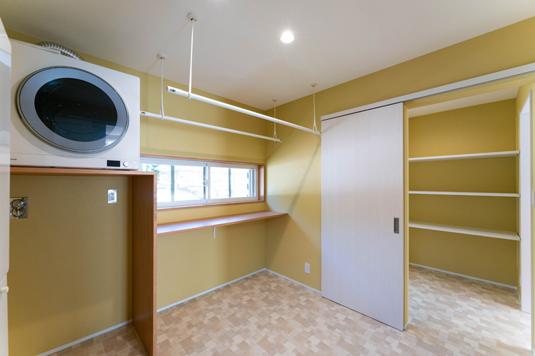 また、季節家電などの収納場所として納戸を新たに設けたり、ランドリースペースも広く確保したりと、実際の暮らしをイメージしながら設計を進めました。以前は洗濯物を干す場所がなくても、ご夫婦2人では困らなかったと伺っていますが、これからは洗濯物の量も増えると思いますので、余裕のある家事空間を確保させていただきました。
