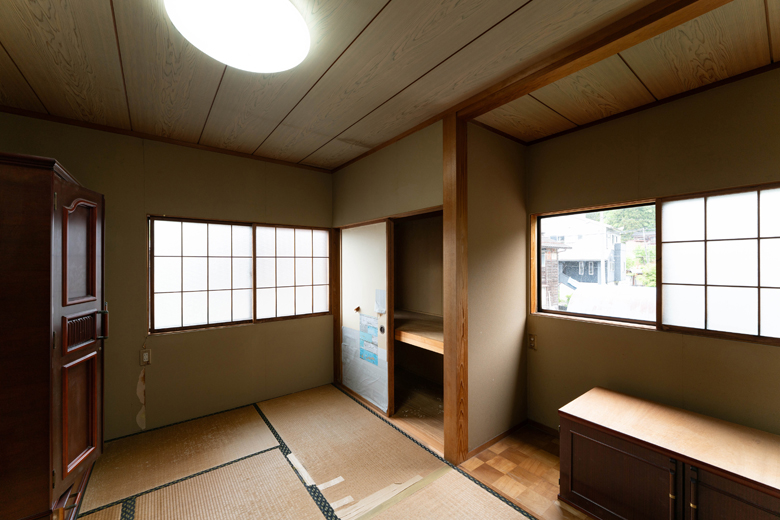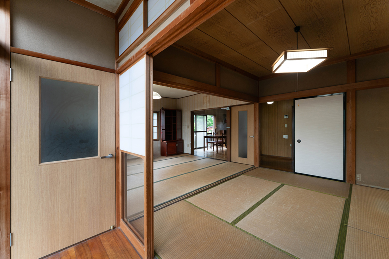以前居間として使っていた和室。食卓と空間はつながっているものの、仕切りも多く、見通しが悪かった。