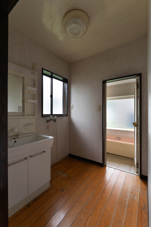 2畳しかない洗面脱衣とランドリー。ダイニングキッチンからも離れており、家事がやりづらかった。