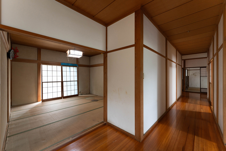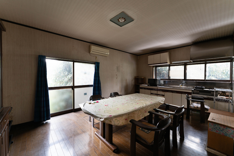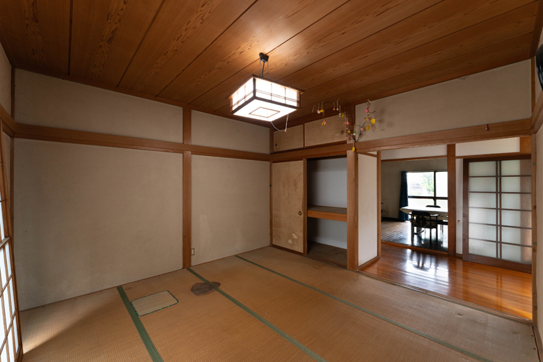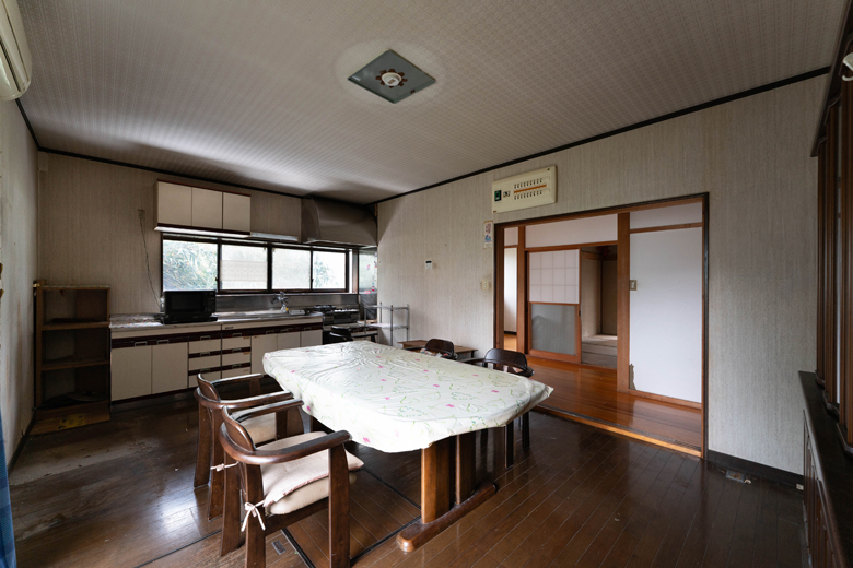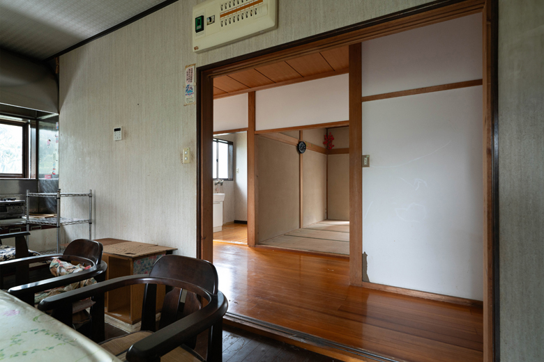 以前はダイニングキッチンと居間(和室)が廊下を隔て分かれていた。