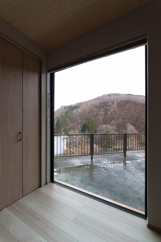 ご要望のあった景色を眺める窓。四季折々に色づく山を広間から一望できる。