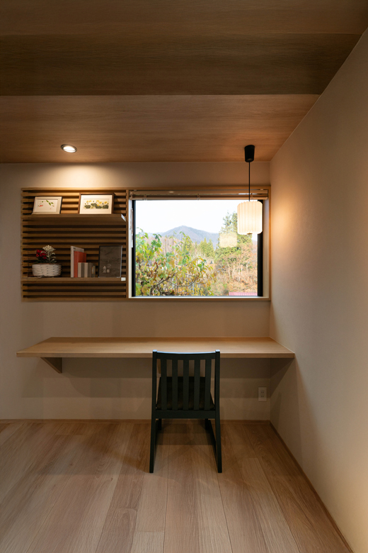 (奥様)欄間と飾り戸は残したいこと、そして山の景色を眺められる大きな窓が欲しいことをコーディネーターの反町さんに伝えました。もともと使っていたテーブルと椅子を使いたいと考えていたので、その点も含めて全体をまとめていただきました。