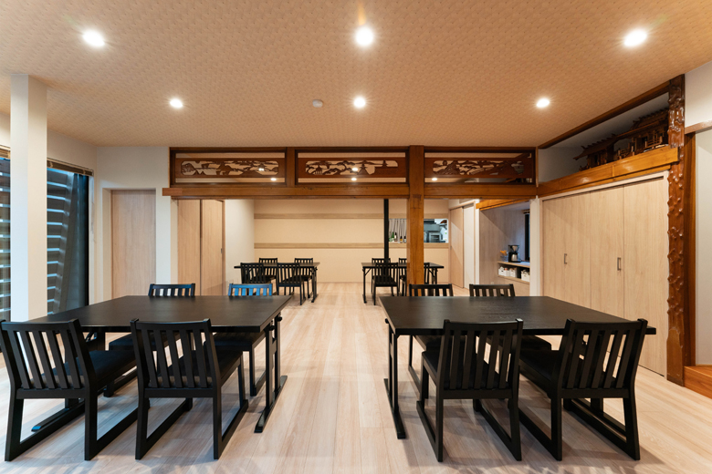 (奥様)欄間と飾り戸は残したいこと、そして山の景色を眺められる大きな窓が欲しいことをコーディネーターの反町さんに伝えました。もともと使っていたテーブルと椅子を使いたいと考えていたので、その点も含めて全体をまとめていただきました。