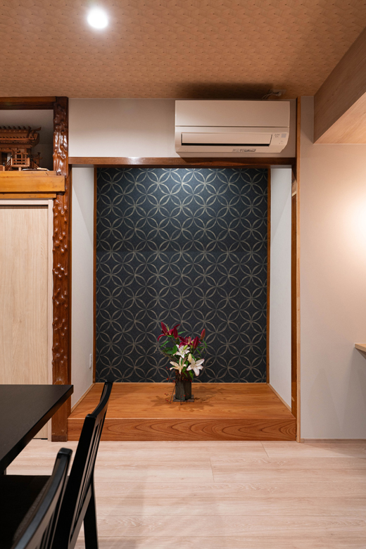 (営業:五十嵐)以前床の間があった場所ですね。扉を設けて広間と区分けしています。扉のすぐ内側にドリンク冷蔵庫を配置し、扉を開けても広間から見えないよう工夫しています。