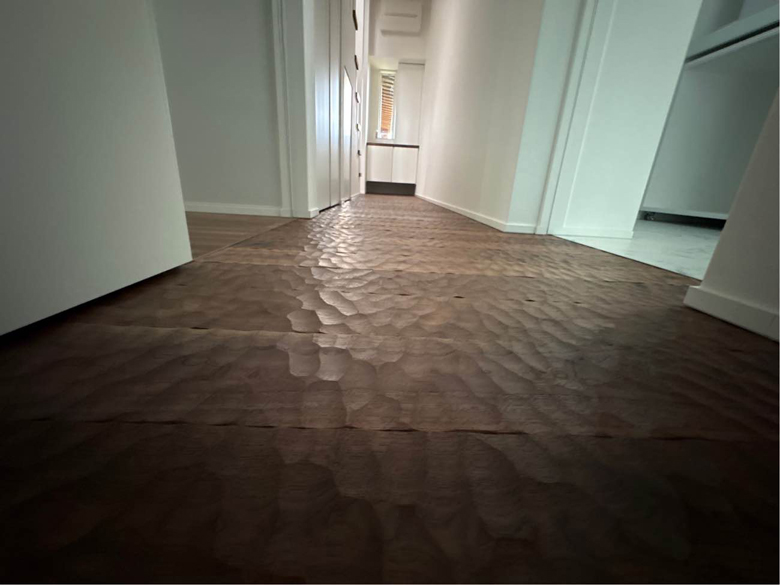 (営業・設計)床暖房の入らない廊下には、上質な床を使いたいというご要望がありました。いくつかの商品を提案する中で、最終的にスプーンカットの床をお選びいただきました。足触りも見た目も上質で、空間のアクセントにもなっています。